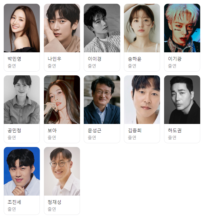 박민영 배우님, 나인우 배우님, 이이경 배우님, 송하윤 배우님, 이기광 배우님,