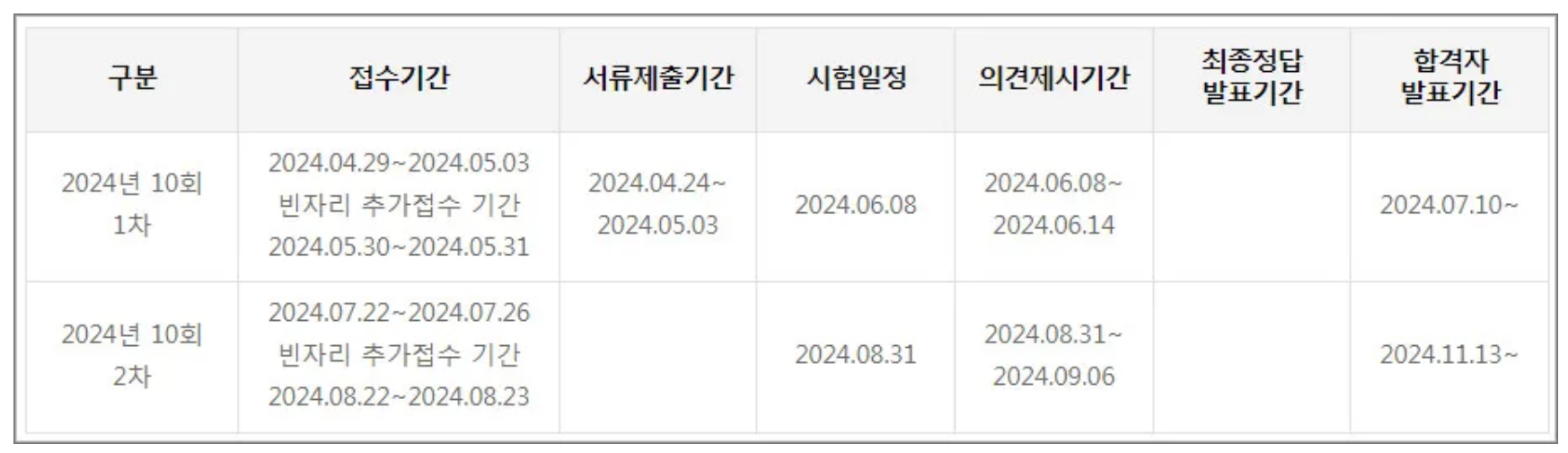 2024년 7월 10일에 1차 시험 합격자발표 일정입니다.