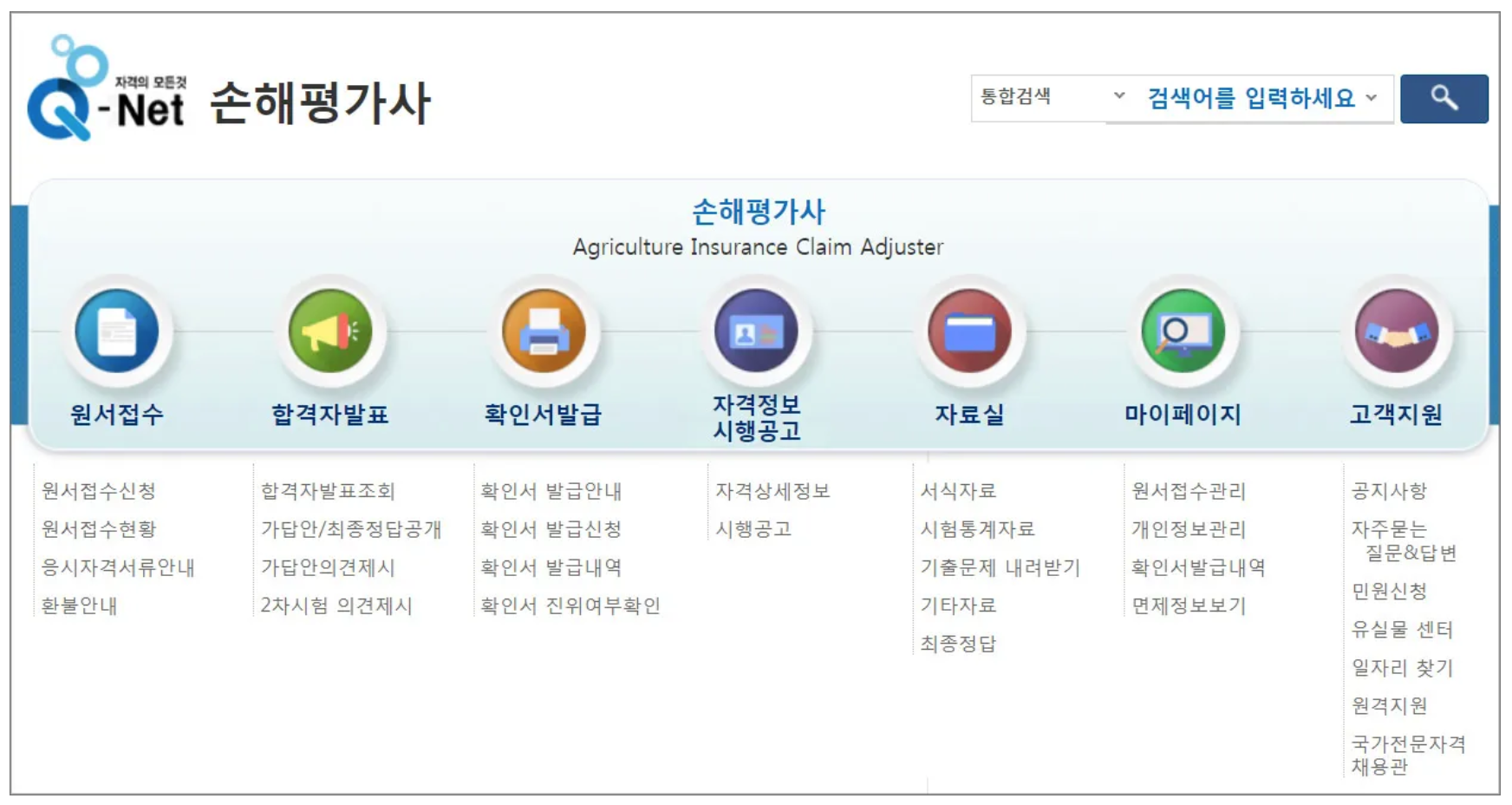 손해평가사 시험응시는 큐넷 사이트에서 가능합니다.